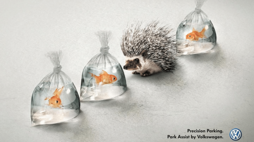 Em algumas situações, você só terá esses dois elementos para passar a sua mensagem e fazer com que o público aja. Esse é o caso de alguns anúncios digitais, onde não há muito espaço para texto. Mas também pode ser o caso de um anúncio impresso de respeito. Como esse, da Volkswagen.