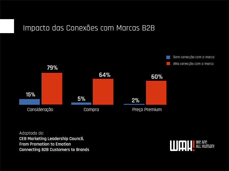 Em média, compradores B2B são significativamente mais conectados emocionalmente com seus vendedores e fornecedores do que consumidores comuns.